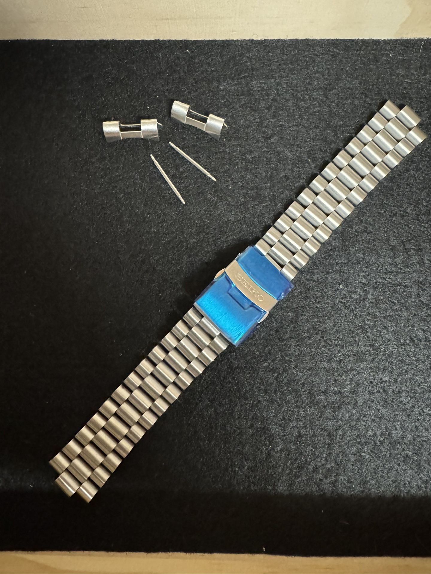 Seiko jubilee stainless steel 20mm band. Curved end links and spring bars included.