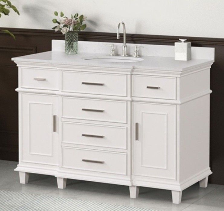 Brand New White 48 Inch Bathroom Vanity w Stone Countertop