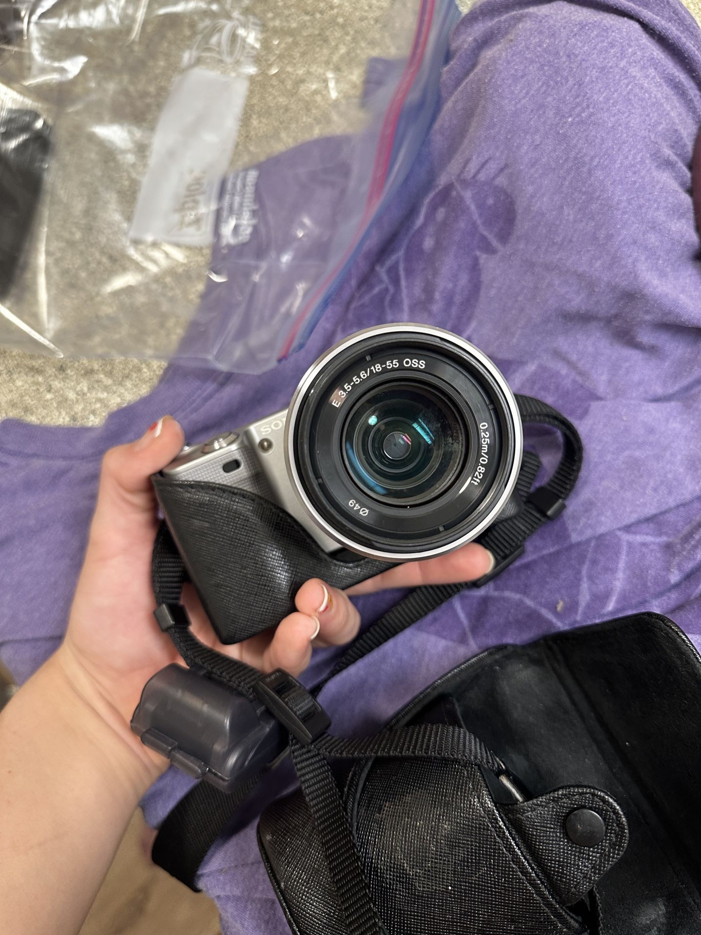 Sony NEX-5 mirrorless camera body E 3.5-5.6/18-55 OSS lens Camera Case and strap charger and shoe box flashlight Ready to capture some great pics, the last 3 photos are examples taken with this camera+lens bought from marketplace drove far to pick up but going for an action camera instead
