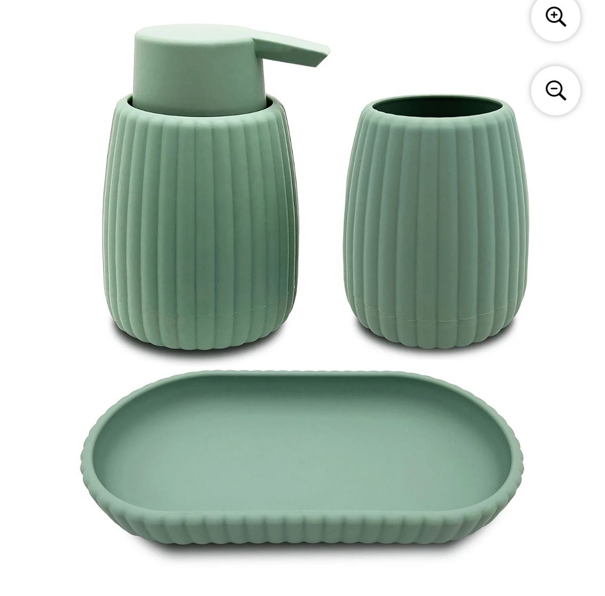 Mainstays Rubberized Plastic Ribbed 4-Piece Bath Accessories Set, Green