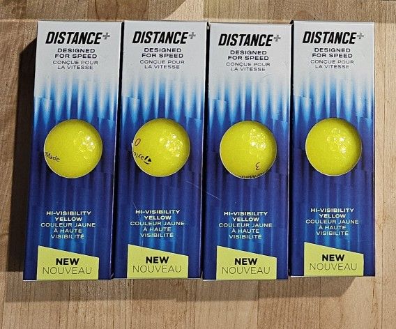 All brand new 12, dozen, 4 sleeves TaylorMade Distance+ yellow