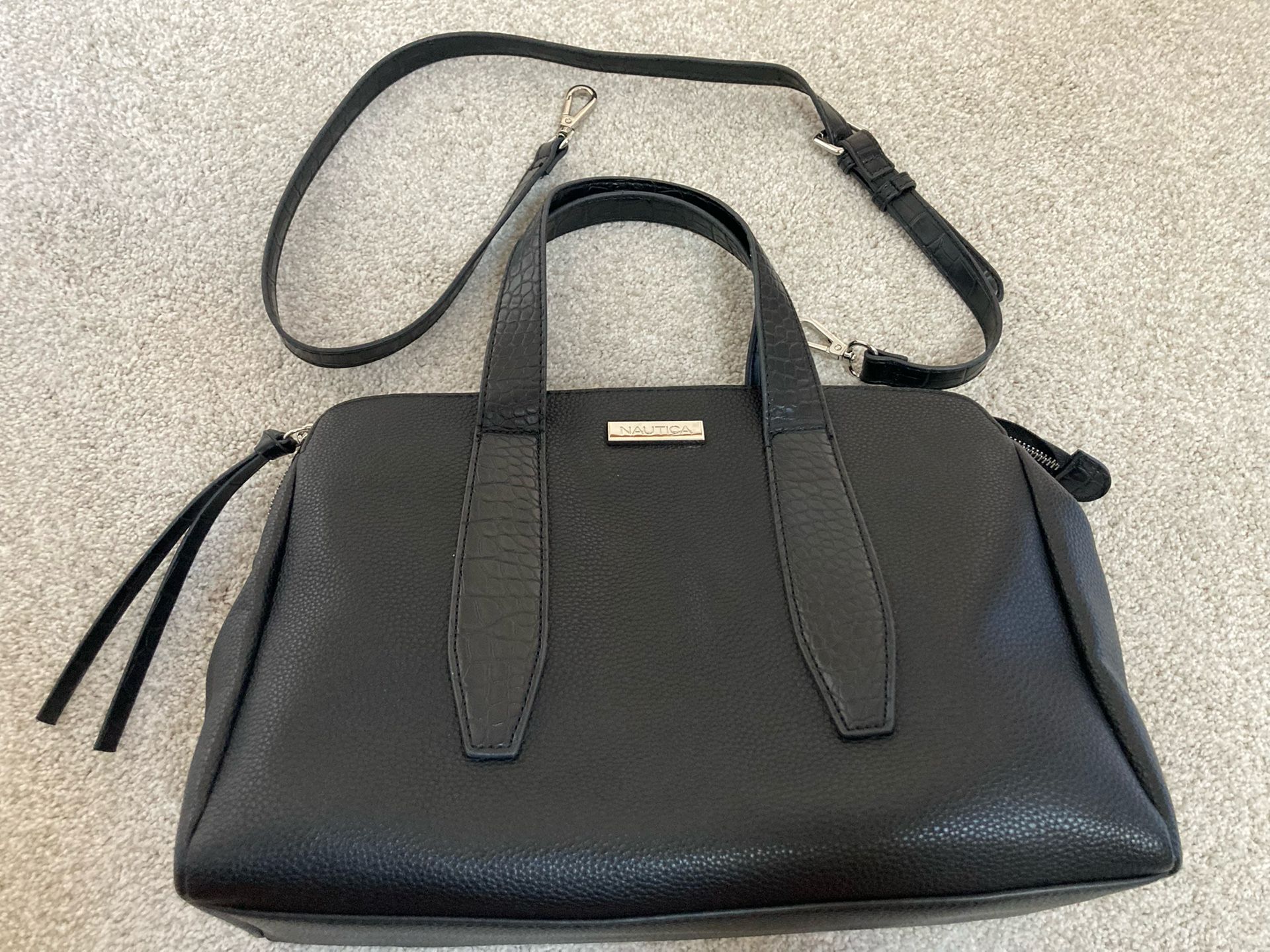 Brand New, Never Used, Nautica Black Satchel Purse. Includes Shoulder Strap.