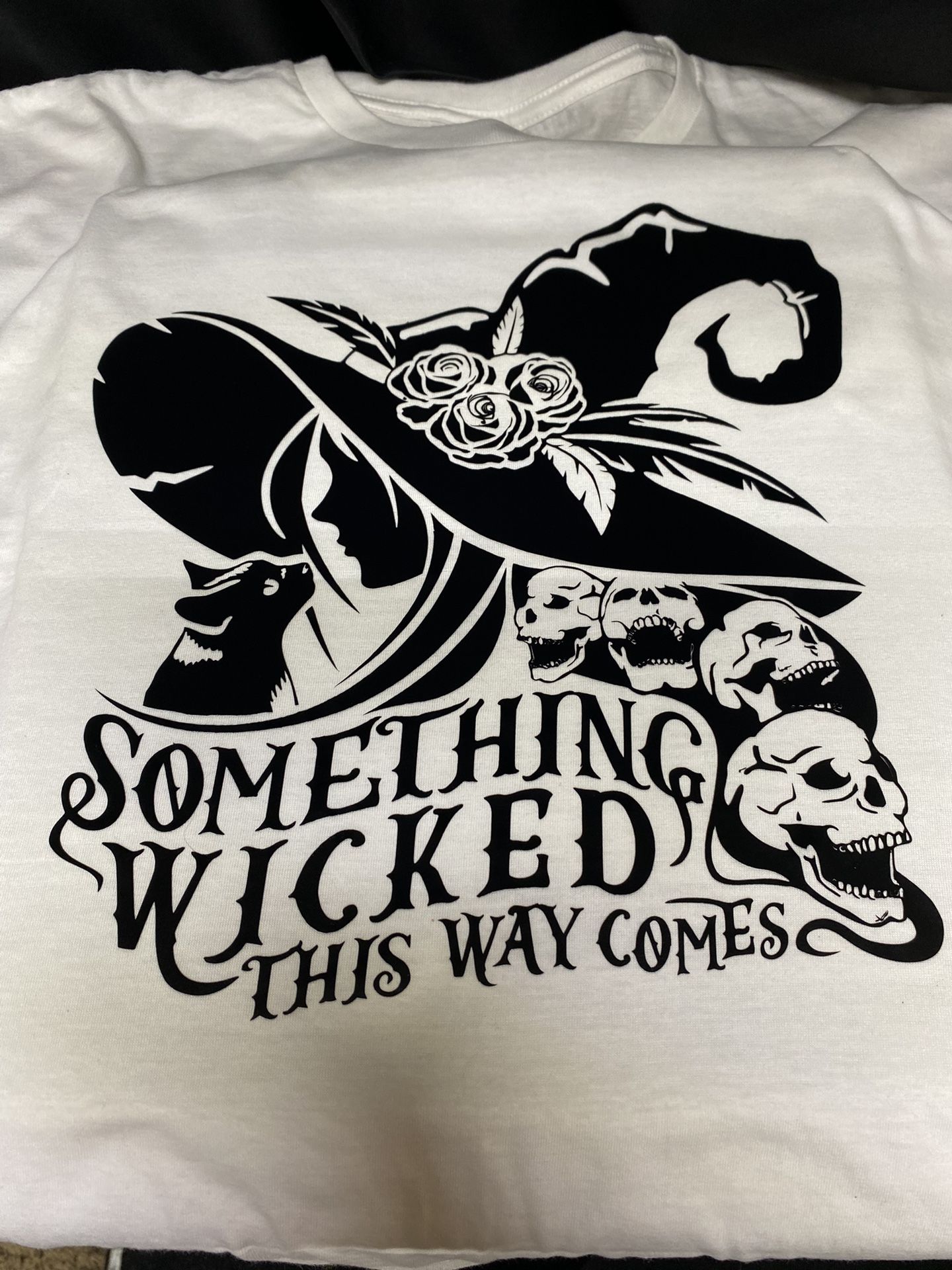 “Something Wicked This Way Comes” Graphic Tee Brand new 100% Soft Cotton Double Stitched Tee Gildan Unisex top of the Line Tee