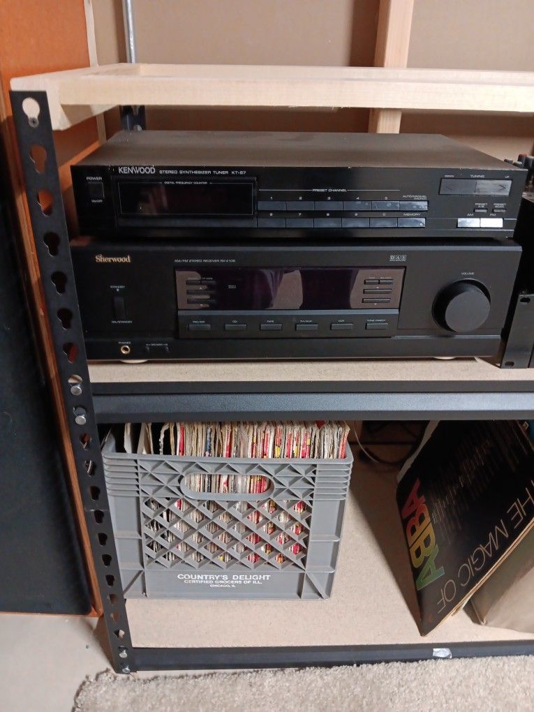 Sherwood AM/FM stereo receiver rx-4105 in great shape. No phono setting however, don’t worry – many turntables have their own built-in preamp. You can verify this in the owner’s manual. As long as this is the case, you can use any receiver input, such as the ones labeled “Line,” “Audio,” “CD,” or “Auxiliary.”