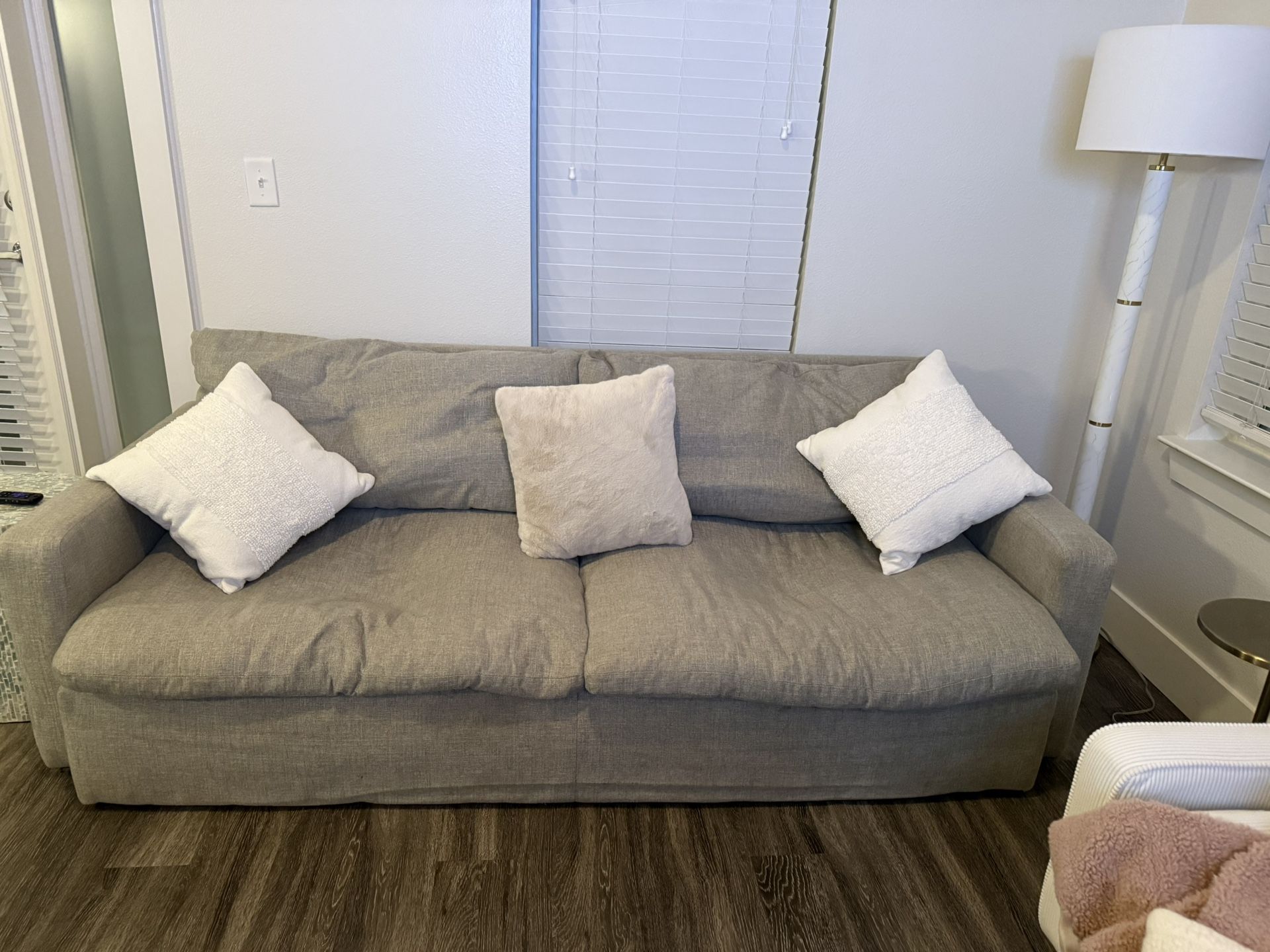 I’ve had this for less than a month but need to get a sofa bed instead. Very soft and fluffy and is in great condition. Can have the throw pillows too. Must pick up in college park.