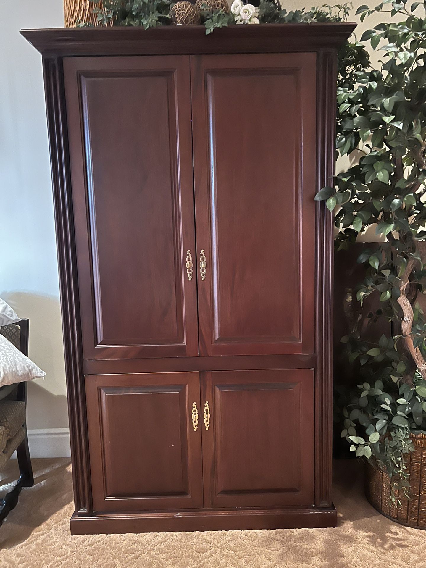 High end solid wood Cherry wood storage tv cabinet 48 wide 24 deep 84 height, room for 32 in tv Great condition $200 or OBO