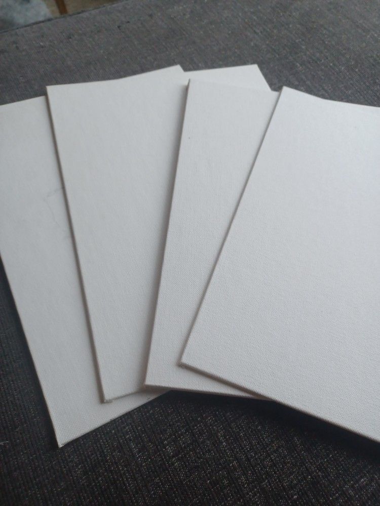 I have 5 total Fredrix artist canvas panels. All the same size 9×12. There are just a couple lines on one of the panels. The others have not been used. They are pre primed and are new!