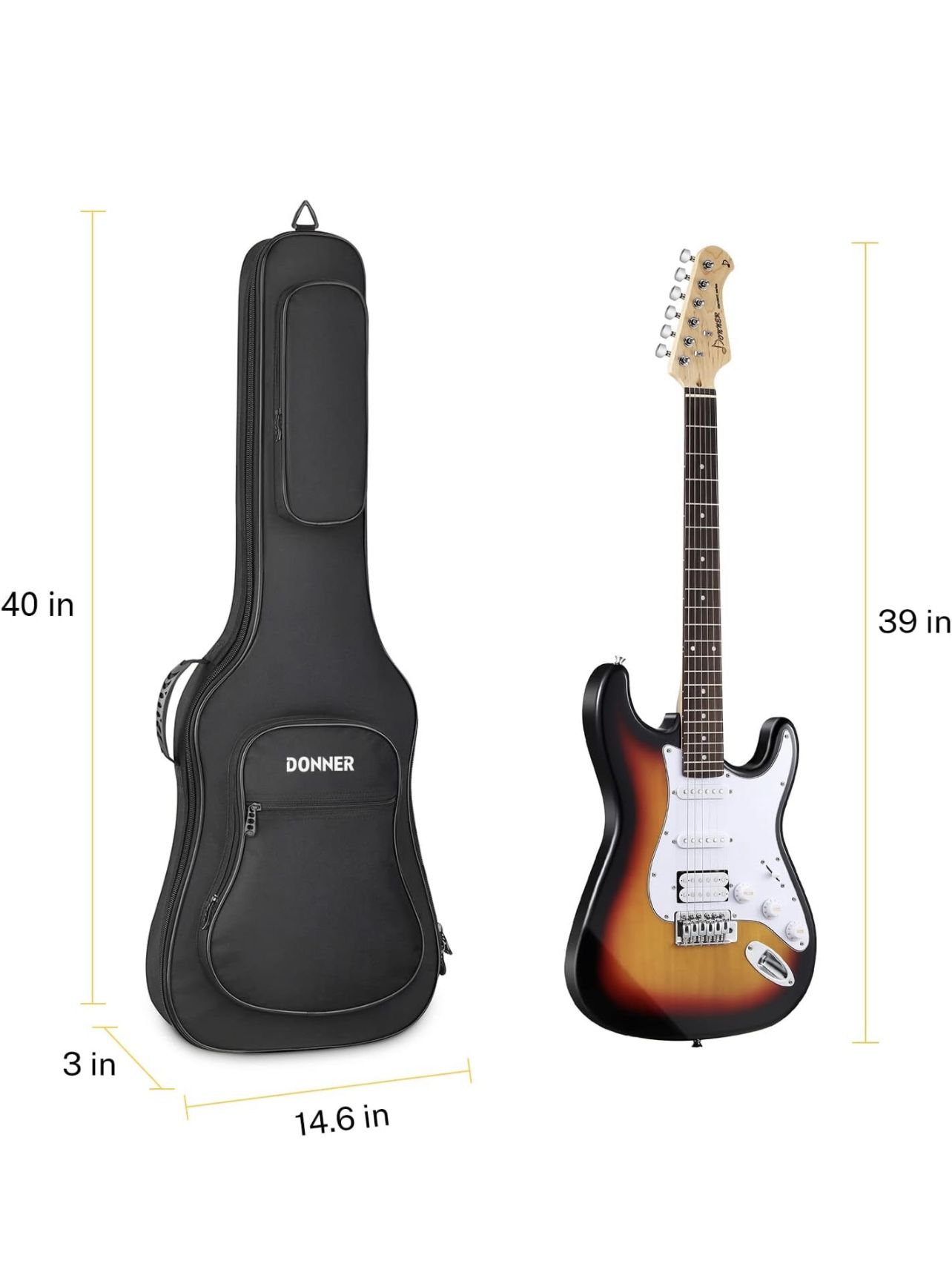 Donner 39 inch Electric Guitar Bag Gig Bag, 0.4 Inch Padded Sponge 600D Ripstop Waterproof Nylon Dustproof Soft Electric Guitar Case Adjustable Strap Black New