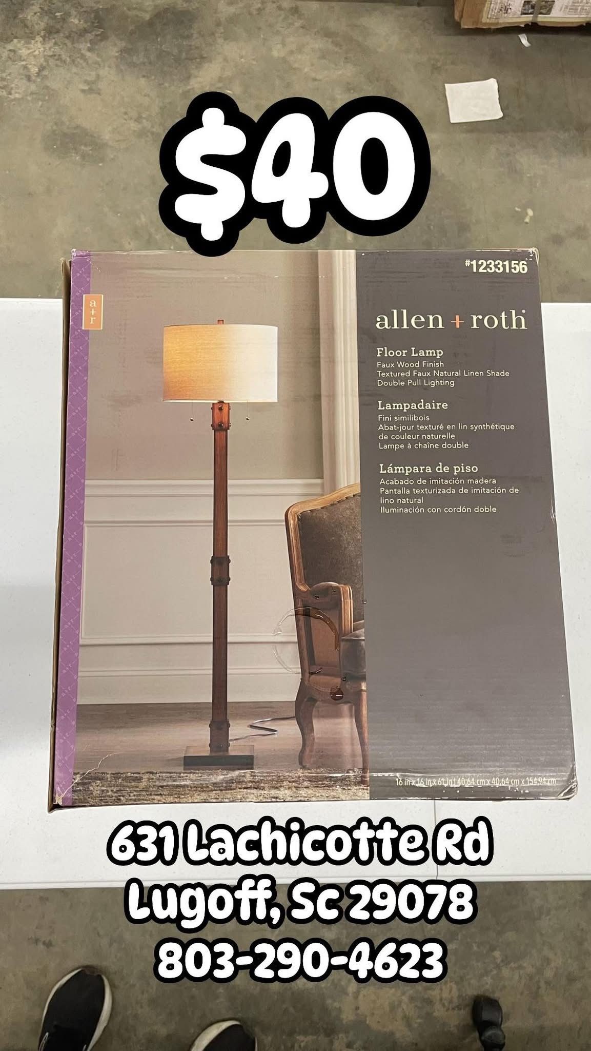 π‘ $40 allen + roth 61.0-in Faux Wood Shaded Floor Lamp π ποΈ Pick up by appointment! π Call us at (contact info removed) π Located at 631 Lachicotte Rd, Lugoff, SC 29078 Product Details: This unique and stylish faux wood finish double pull floor lamp adds a warm touch to any room. The elegant linen shade complements its design, making it a perfect addition to your decor. Key Features: β’ π³ Faux Wood Finish: Enhances the rustic charm β’ π Round Shade Dimensions: 16x16x11-in β’ π Double Pull Feature: Includes harp and finial for easy use β’ π Overall Height: 61 in Illuminate your space with this charming floor lamp! πβ¨