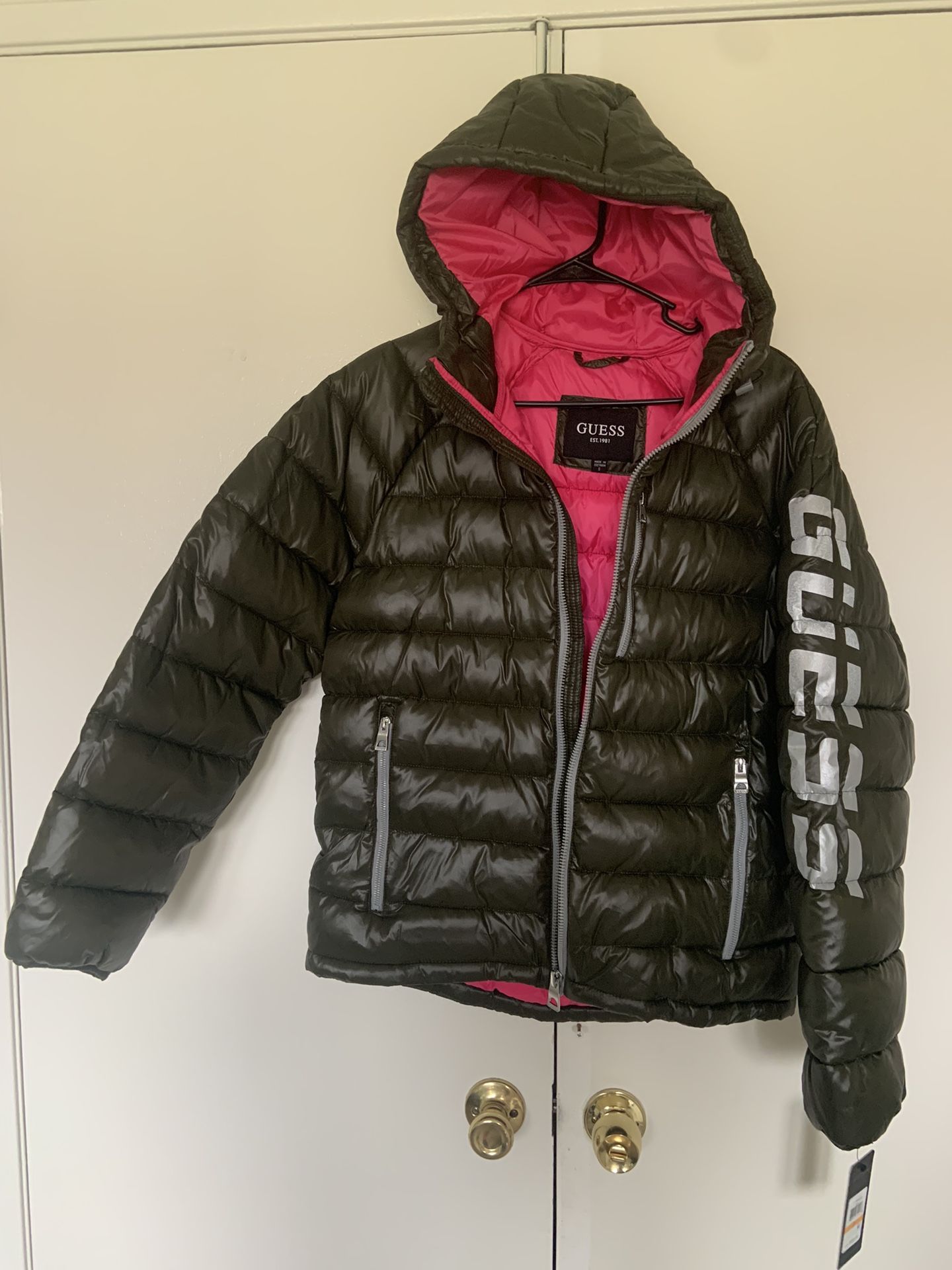 Guess Dark Green & Pink Puffer Jacket New Adult Size Small $50