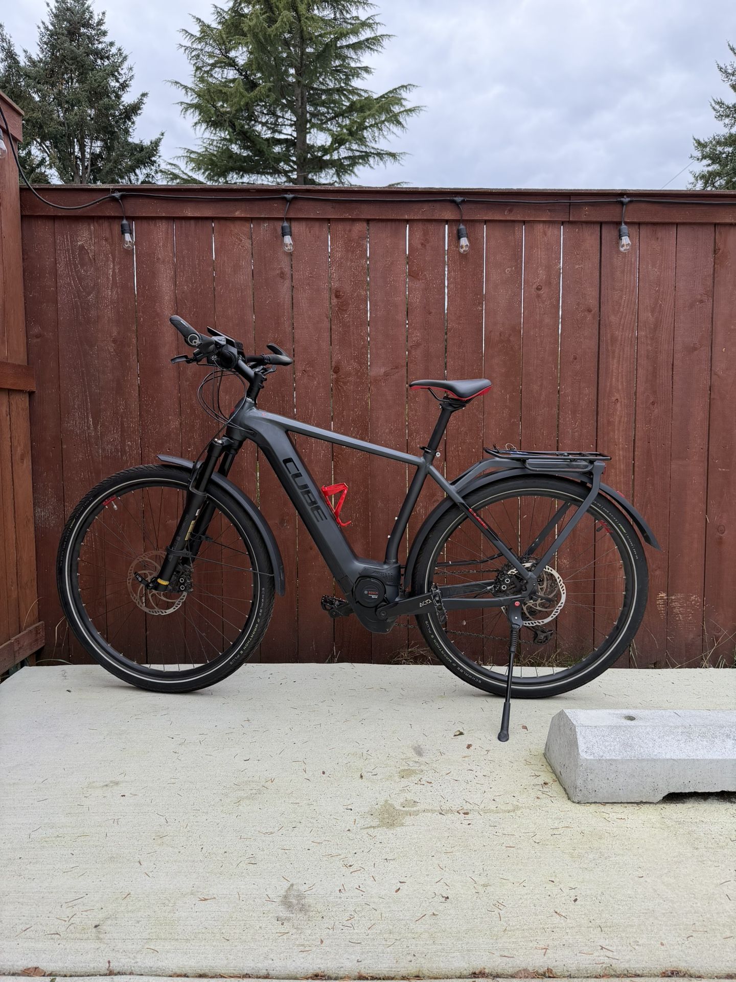 For sale is a Cube Kathmandu Hybrid 45 km/h Class 3 electric bike, made in Germany (Bavaria). The bike is in excellent condition, clean, and well-maintained. It's powered by the Bosch Performance Line Speed 250 W motor (Class 3) and designed for comfortable, long-range commuting and touring. • Specifications: Model: Cube Kathmandu Hybrid 45 km/h S- Pedelec • Motor: Bosch Performance Line Speed 250 W (Class 3 - up to 45 km/h/ 28 mph) • Frame Size: 54 cm (fits riders ~5'9-6'1 ft/ 175-185 cm) • Wheel Size: 28" / 700c • Battery Slot: Bosch Power Tube 500 Wh / 625 Wh compatible • Display: Bosch Intuvia (center mount LCD) • Brakes: Hydraulic disc brakes (front & rear) • Front Suspension: Air fork for a smooth ride • Accessories: Fenders, rear rack (ABUS lock key system included), kickstand, bottle cage • Condition: Excellent - minimal use, no damage or issues • Battery: Not included (ready for Bosch Power Tube 625 Wh or 500 Wh battery) • Notes: • Comes with original ABUS key for battery lock system • Everything functions as intended - display and motor power up normally when a battery is installed • Perfect for commuting or long-distance rides with Bosch's high-torque speed motor