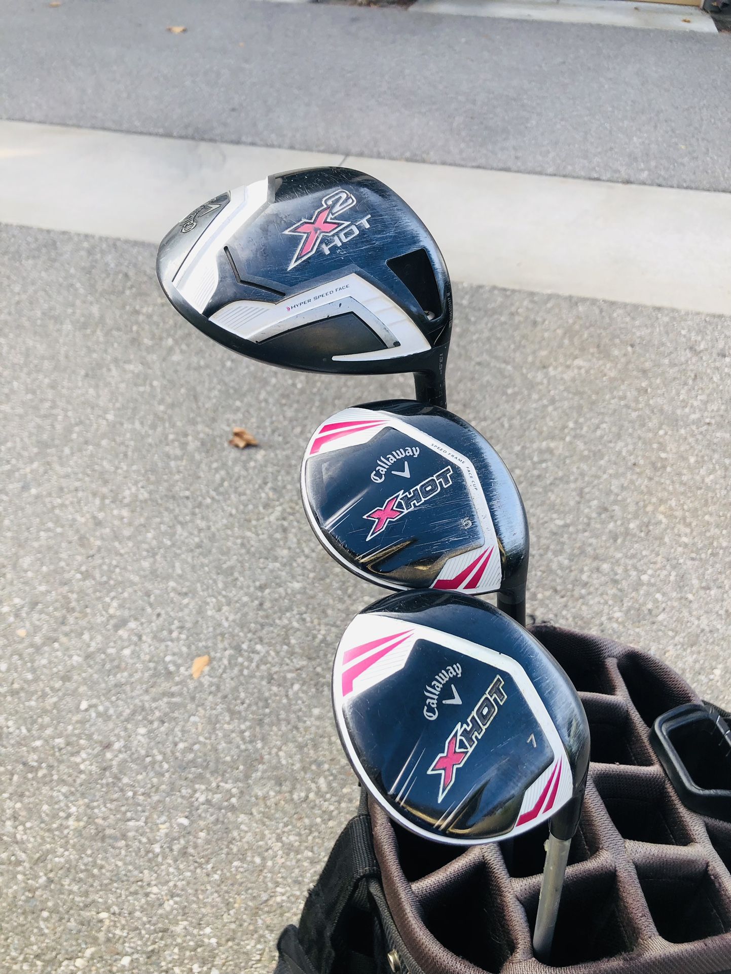 Ladies Callaway X2 Hot Driver 13.5 Loft, 5 & 7 Fairway Woods with Graphite W Flex. RH….$300