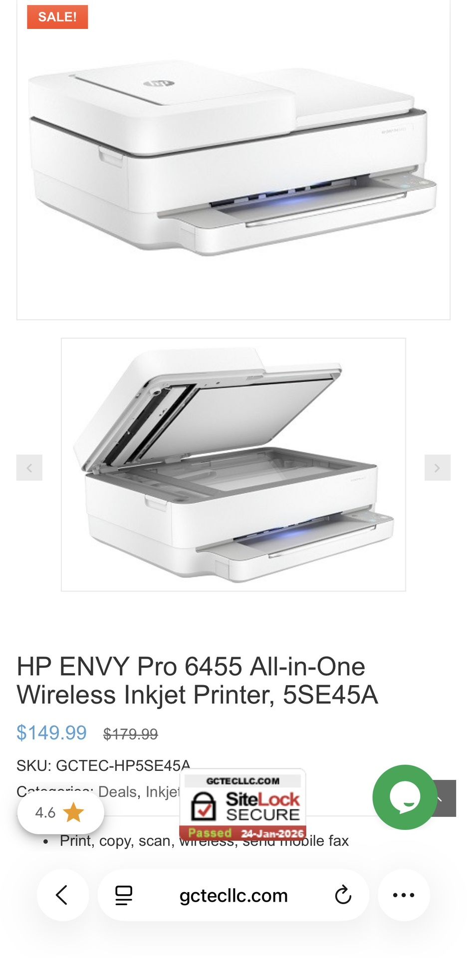 Additional features Set up and connect on any device, and easily handle tasks with a flatbed scanner and auto two-sided printing. Product specifications HP ENVY Pro 6455 All-in-One Printer Functions Print, copy, scan, wireless, send mobile fax Print speed, black (ISO, laser comparable) Up to 10 ppm Print speed, color (ISO, laser comparable) Up to 7 ppm Resolution (black) Up to 1200 x 1200 rendered dpi (when printing from a computer) Resolution (color) Up to 4800 x 1200 optimized dpi color (when printing from a computer on selected HP photo papers and 1200 input dpi) Monthly duty cycle Up to 1000 pages Recommended monthly page volume 100 to 400 Print Technology HP Thermal Inkjet Processor speed 800 MHz Number of print cartridges 2 (1 each black, tri-color) Replacement cartridges HP 67 Black Original Ink Cartridge (~120pgs yield) 3YM56AN; HP 67XL Black High Yield Original Ink Cartridge (~240pgs yield) 3YM57AN; HP 67XXL Black Extra High-Yield Original Ink Cartridge (~400pgs yield) 3YM59AN; HP 67 Tri-Color Original Ink Cartridge (~100pgs yield) 3YM55AN; HP 67XL Tri-Color High-Yield Original Ink Cartridge (~200pgs yield) 3YM58AN; HP 67XXL Tri-Color Extra High-Yield Original Ink Cartridge (~330pgs yield) 6ZA16AN Compatible ink types Dye-based (color); Pigment-based (black) Print languages HP PCL 3 GUI Automatic paper sensor Yes Paper trays, standard 1 Paper trays, maximum 1 Mobile Printing Capability HP Smart app; Apple AirPrint™; Mopria™-certified Connectivity, standard 1 Hi-Speed USB 2.0; 1 Wi-Fi 802.11ac (dual band) Memory, standard 128 MB DDR3 Minimum system requirements MacOS Sierra v10.12 (previously OS X), macOS High Sierra v10.13, macOS Mojave v10.14, macOS Catalina v10.15, 2 GB Available Space, Internet Access Windows 10, 7: 1 GHz 32-bit (x86) or 64-bit (x64) processor, 2 GB available hard disk space, Internet connection, USB port, Internet Explorer Compatible operating systems Windows 10, 7; MacOS Sierra v10.12 (previously OS X), macOS High Sierra v10.13, macOS Mojave v10.14, macOS Catalina v10.15 Paper handling input, standard Up to 100 sheets input tray Cash Only Pick up in Oak Park off of 54th St near University Ave