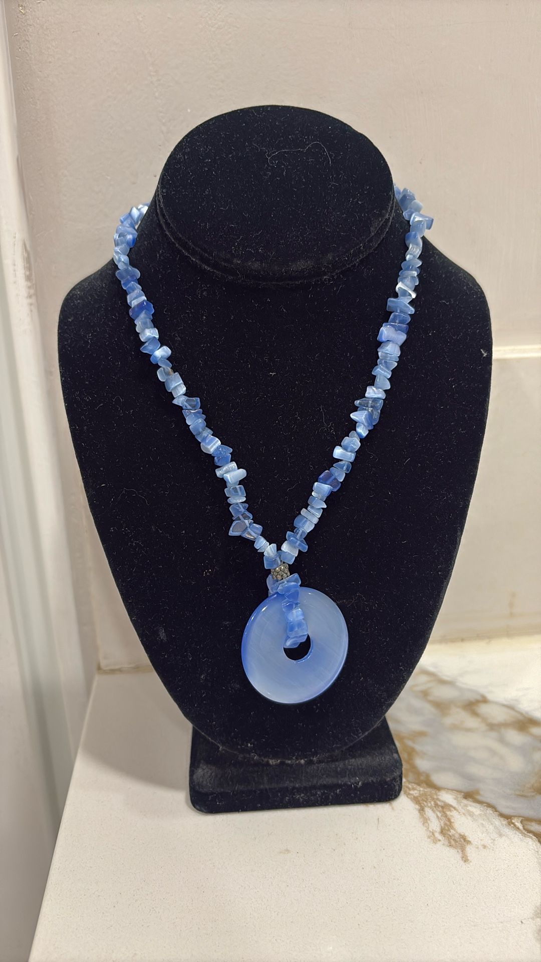 Beautiful Vintage Blue Stone, Necklace, With Circular Pendant.