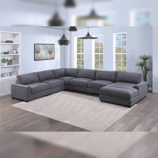 New 127x164x66 Dark Gray Corduroy 6pc Sectional Message me for the furniture store address or any Details Delivery available as well as financing