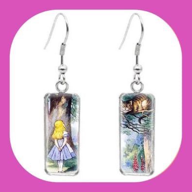 New Unique Super Adorable Alice in Wonderland Alice & Cheshire Cat Portrait Earrings