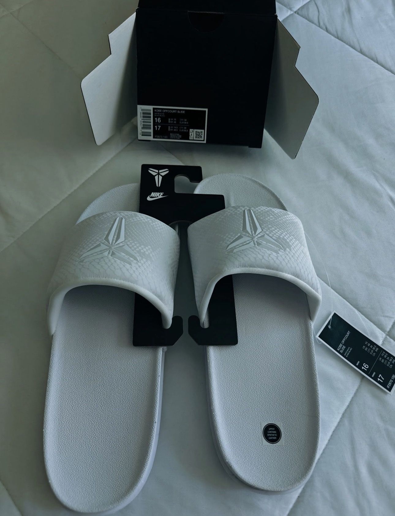 Men size 16 /Nike / Kobe off court slides / IF2870-100/ white / white / sold out / brand new / never worn, pair come with the original box and packaging.