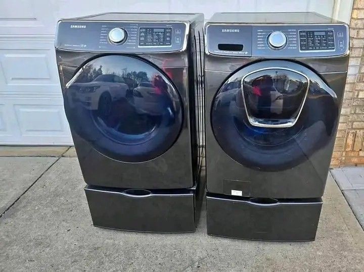 I’m selling this Washer and Dryer Set. Quick sell The set is Stackable. Measures 27" Width , 44" height and shallower depth is 28". They have great working condition . They both have clear lids as well as oversized drums for very large loads of laundry . The washer is 5.2 cu ft and has the sink for soaking and scrubbing . The dryer is 9.5 cu ft and has the steam option, which is very convenient for taking wrinkles out of clothes. Brand: GE, I need gone ASAP.