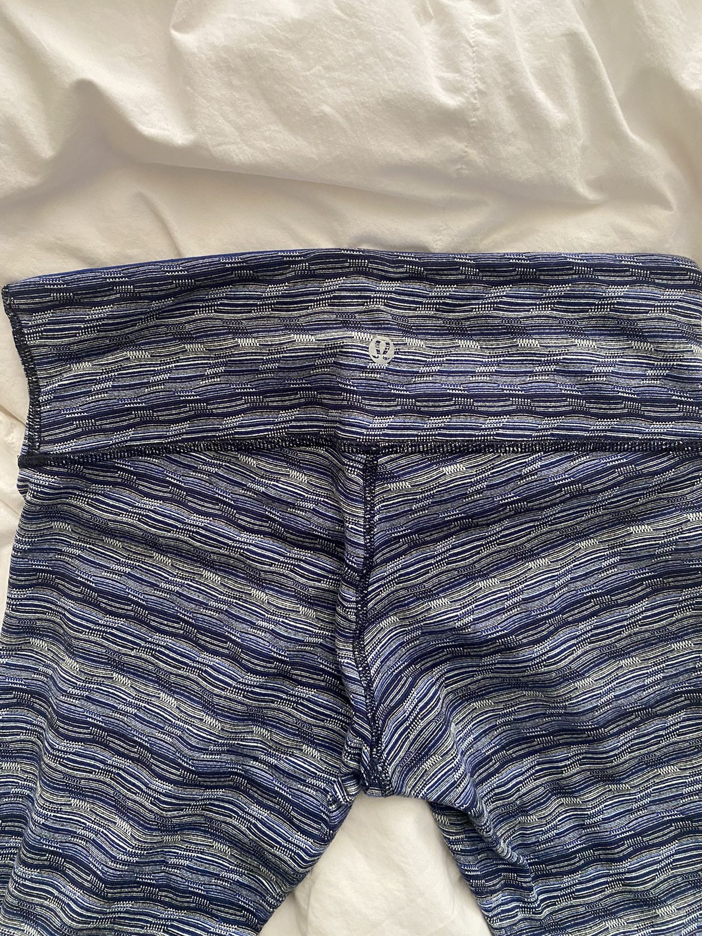 Great condition Lululemon leggings in sz 6. Navy blue with patterns. Thick compression full length. Pick up in Eastlake area. Selling more Lululemon items and other designer items.
