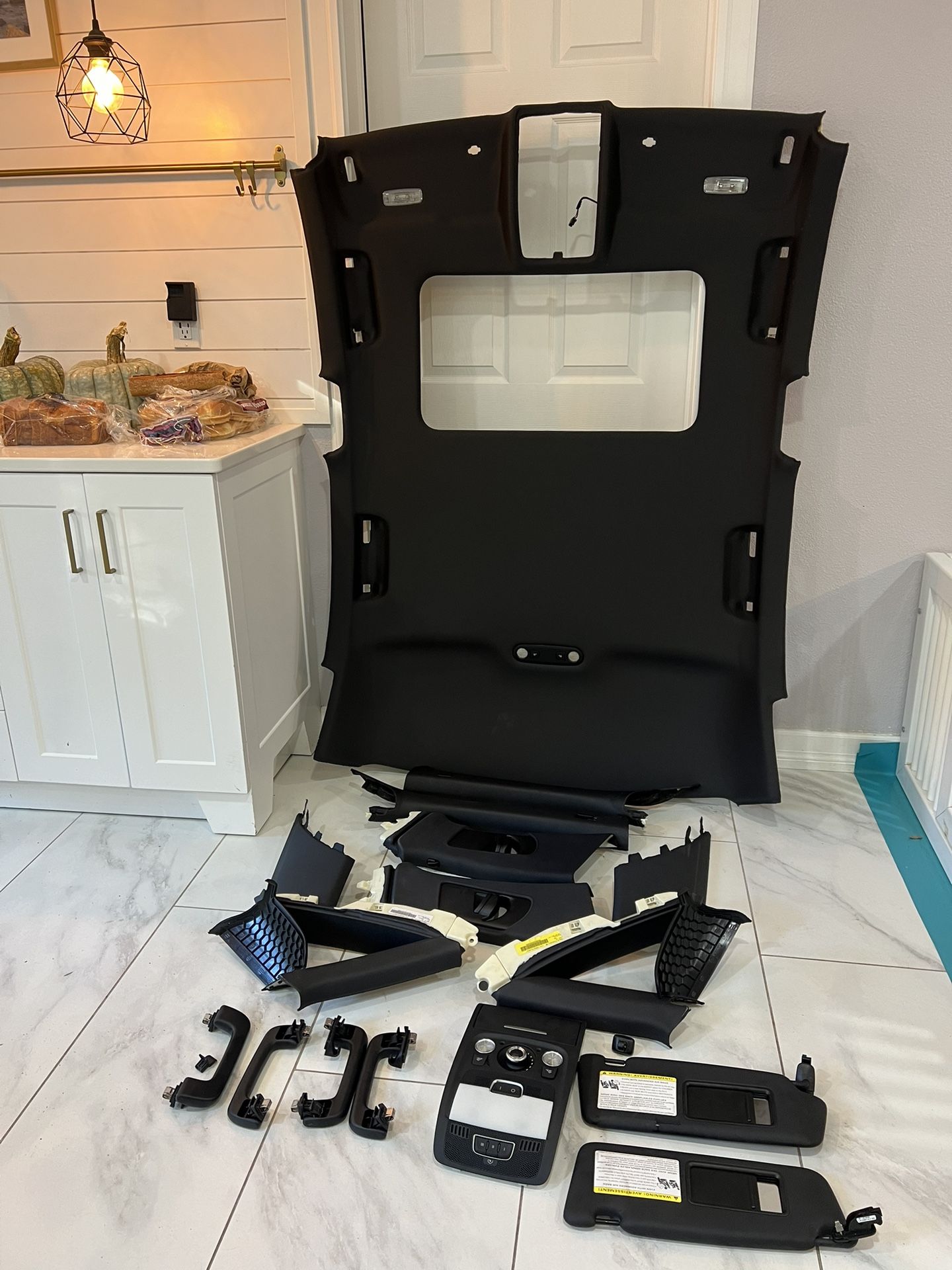 Off a 2014 s4 with 84k miles. Some creases due to airbag deployment. I have not tried steam yet. Missing 1 sunvisor clip and one of the handles was a pita to remove and the clip suffered some damage. You can either keep it as is or replace it. It is the right left rear. Please see photos. Also comes with both sunvisors and the sunroof panels as well. The sunroof panel will need your clips as can be seen in photos. Sets like this usually sell for much more. Get it before it’s gone