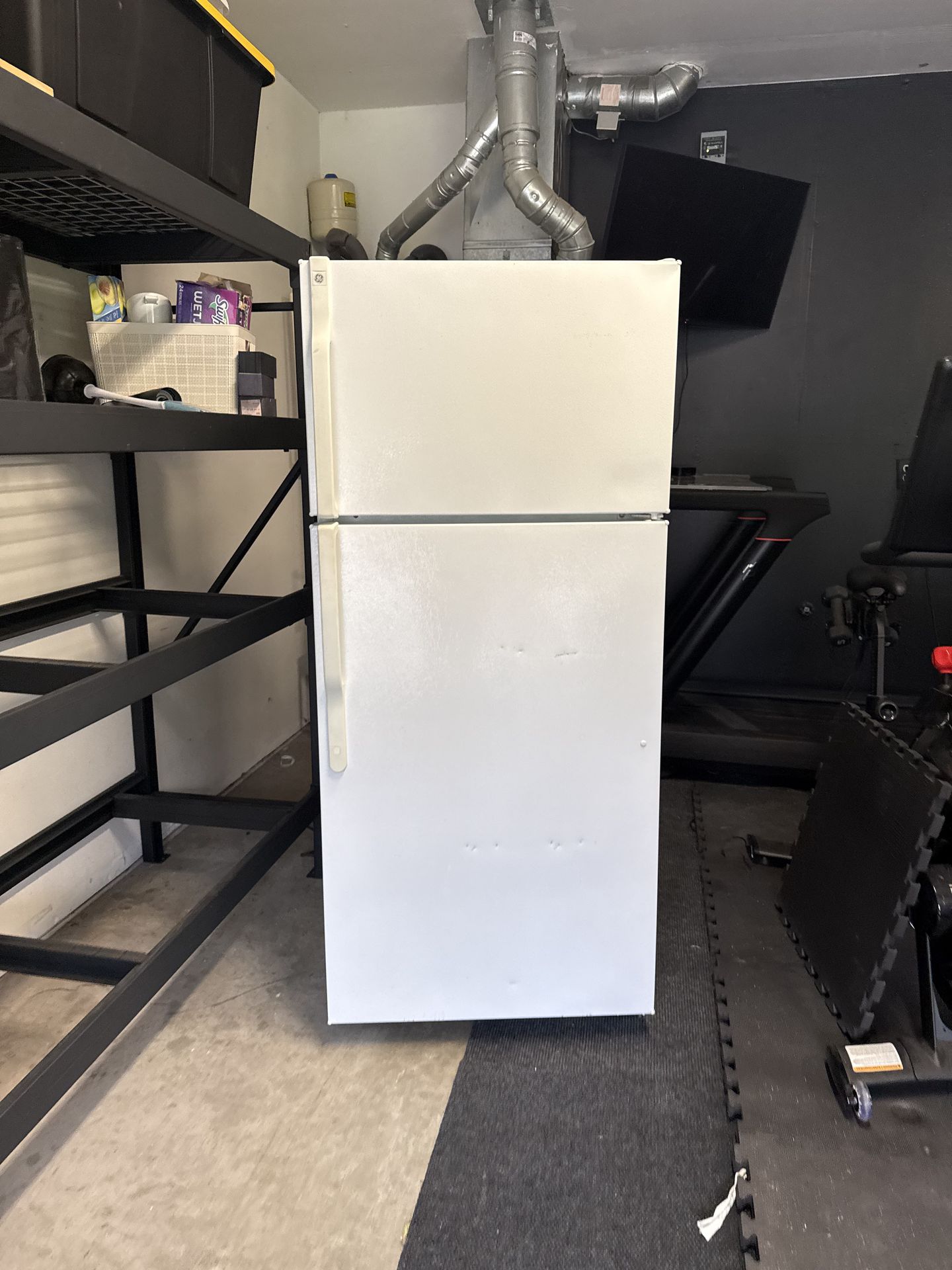 Clean, working refrigerator with top freezer. Cools and freezes properly. Was using in garage but no longer need it. Interior is clean and ready to go. Great for garage, shop, rental, or extra storage. Pickup in Puyallup. $150 OBO.