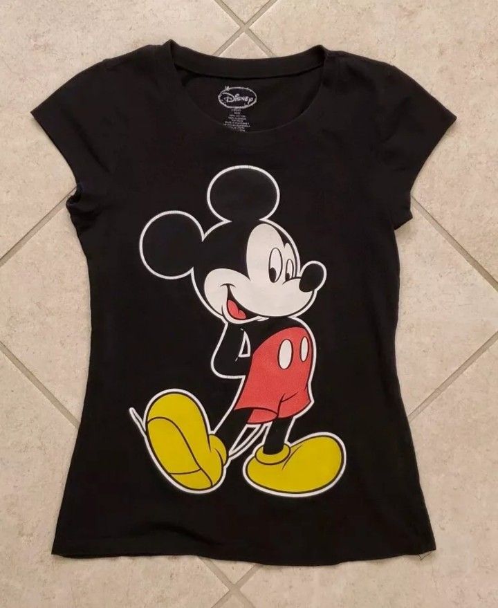 This is a women's Disney Mickey Mouse sleeveless T-shirt. It is black and is a size M. This item is pre-owned and in good condition. If you have any questions about this item, please feel free to send me a message. Measurements: Pit to pit - 15.5 inches Shoulder to hem - 23.5 inches Top of collar to hem bottom - 19.5 inches Shoulder to bottom of cuff (sleeve) - 6 inches