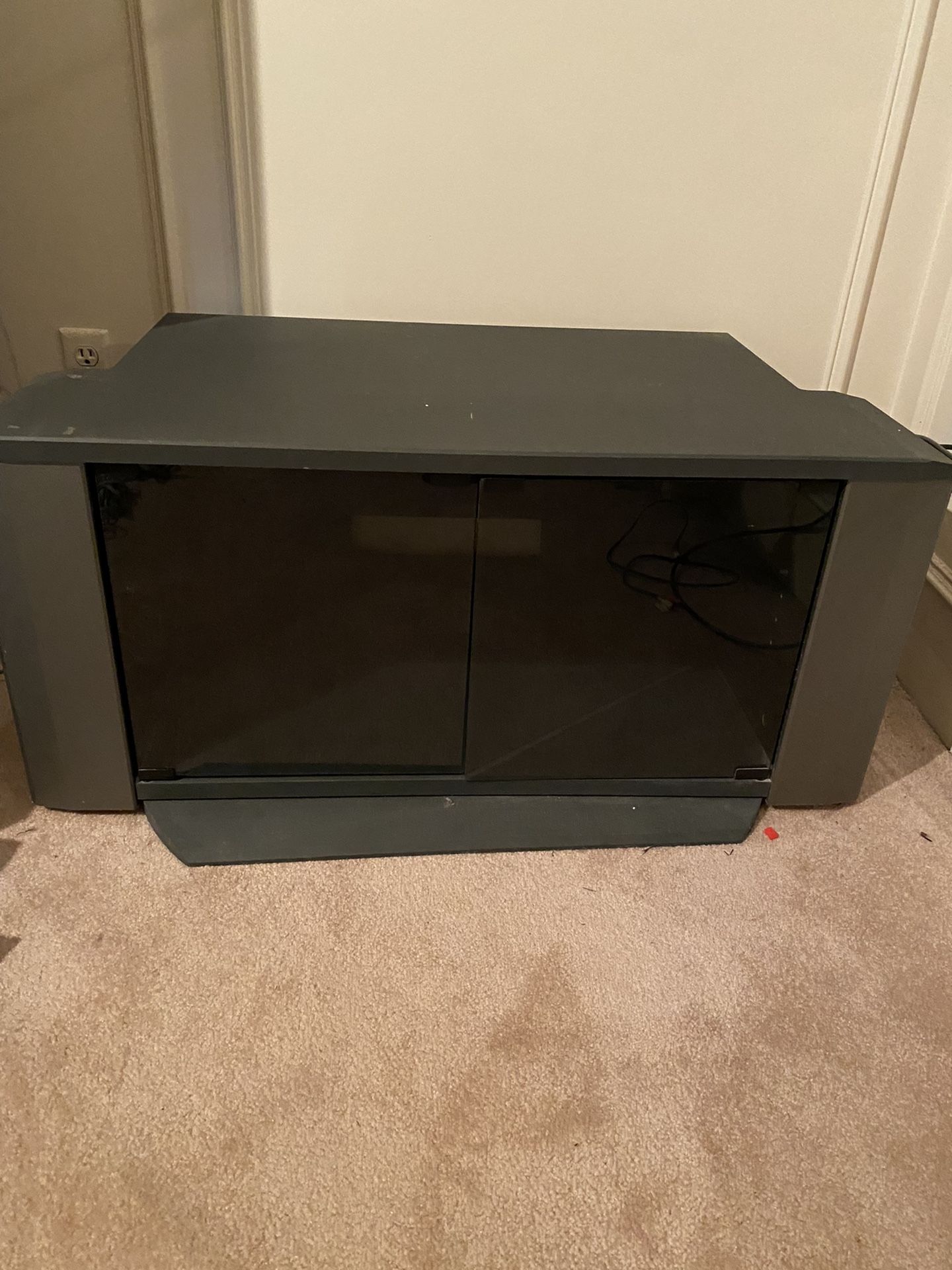 Great tv stand that swivels! Two glass doors and one interior shelf ! This is 38inches long and 18inches tall! Great condition!