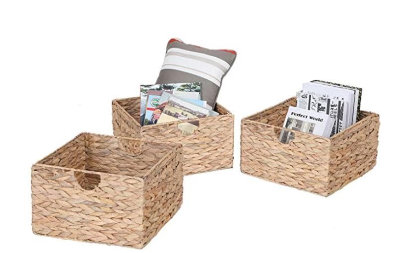 3-Pack Foldable Handwoven Storage Basket with Handles - 13.2" L x 13.2" W x 7.9" H