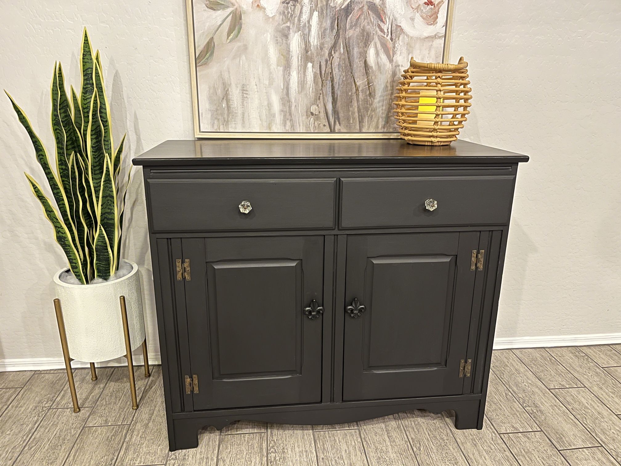 Vintage Painted Wood Storage Cabinet with Two Drawers and Cabinet with Two Shelves. Newly Lined drawers and shelves, Antique Glass Knobs, Clear Durable Poly Finish on the Top. 42”w x 36”h x 19”d $225. Cash/Venmo. FCFS ✨Check my other listings All sales final 🚚Delivery available for a fee Al sales final