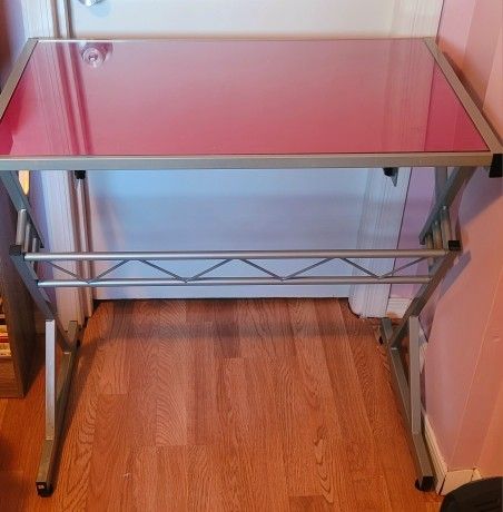 Like new Great condition Glass top Can change the color - have 3 colors to choose from for the desk colour