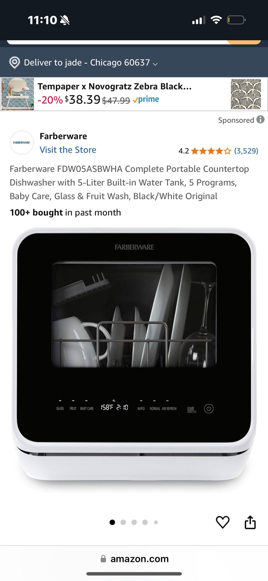 Portable dishwasher works fine, just no room for it. Must be picked up