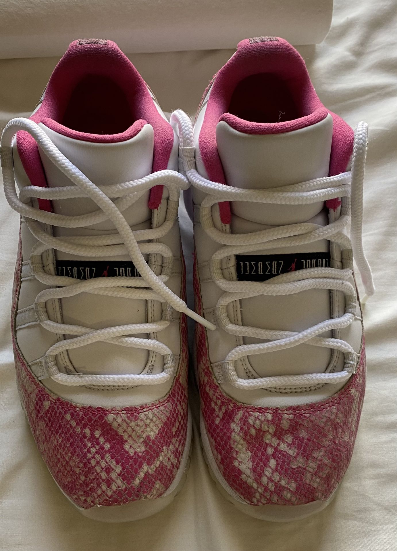 Like new No box !! women's Jordan 11 Retro Low Pink Snakeskin (W) for those warm weather outfits. This AJ 11 low comes with a white upper plus pink and black accents, white midsole, and a translucent sole. These women's sneakers released in May 2019