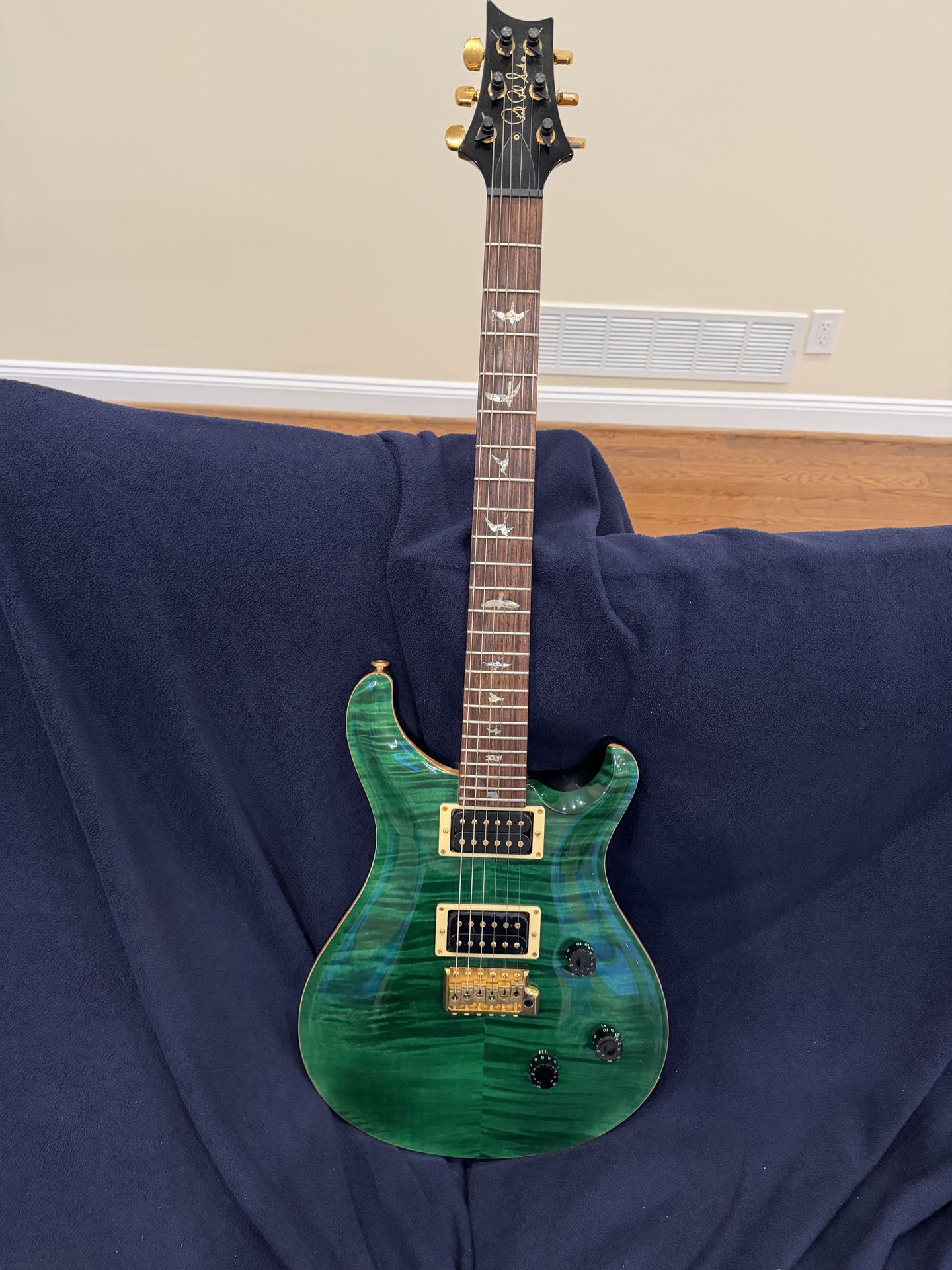 1997 PRS Custom 24: 10 Top: Gold Hardware: Beautiful. Selling a 1997 Paul Reed Smith Custom 24 with a stunning 10 Top carved maple cap and factory gold hardware. This is a USA Core model from one of PRS’s most respected production eras, known for exceptional build quality, highly figured tops, and some of the best neck carves PRS ever produced. The 10 Top designation means the maple figuring is deep, tight, and visually striking. Paired with gold hardware, this guitar has a premium look and feel that stands out immediately. It delivers the classic PRS balance of clarity, sustain, and versatility, making it ideal for both studio and stage. Condition and Playability The guitar plays effortlessly with smooth low action and a fast, comfortable neck. Frets are in excellent shape for its age, and the electronics function perfectly. Cosmetically it is very clean for a 1997 instrument, with only light signs of normal use. No breaks, repairs, or structural issues. Features 1997 PRS Custom 24 10 Top carved maple cap Factory gold hardware Mahogany body and neck Rosewood fingerboard with bird inlays PRS humbuckers (HFS/Vintage Bass for this era) 5‑way rotary switch (standard for 90s models) PRS tremolo system Includes PRS hard case (adjust if needed) Why This Guitar Stands Out Late 90s PRS Core models are increasingly collectible. The combination of a true 10 Top, gold hardware, and the classic 90s PRS electronics makes this a desirable piece for both players and collectors. These guitars are known for reliability, tonal versatility, and exceptional craftsmanship. Location Pickup in Cherry Hill, NJ.