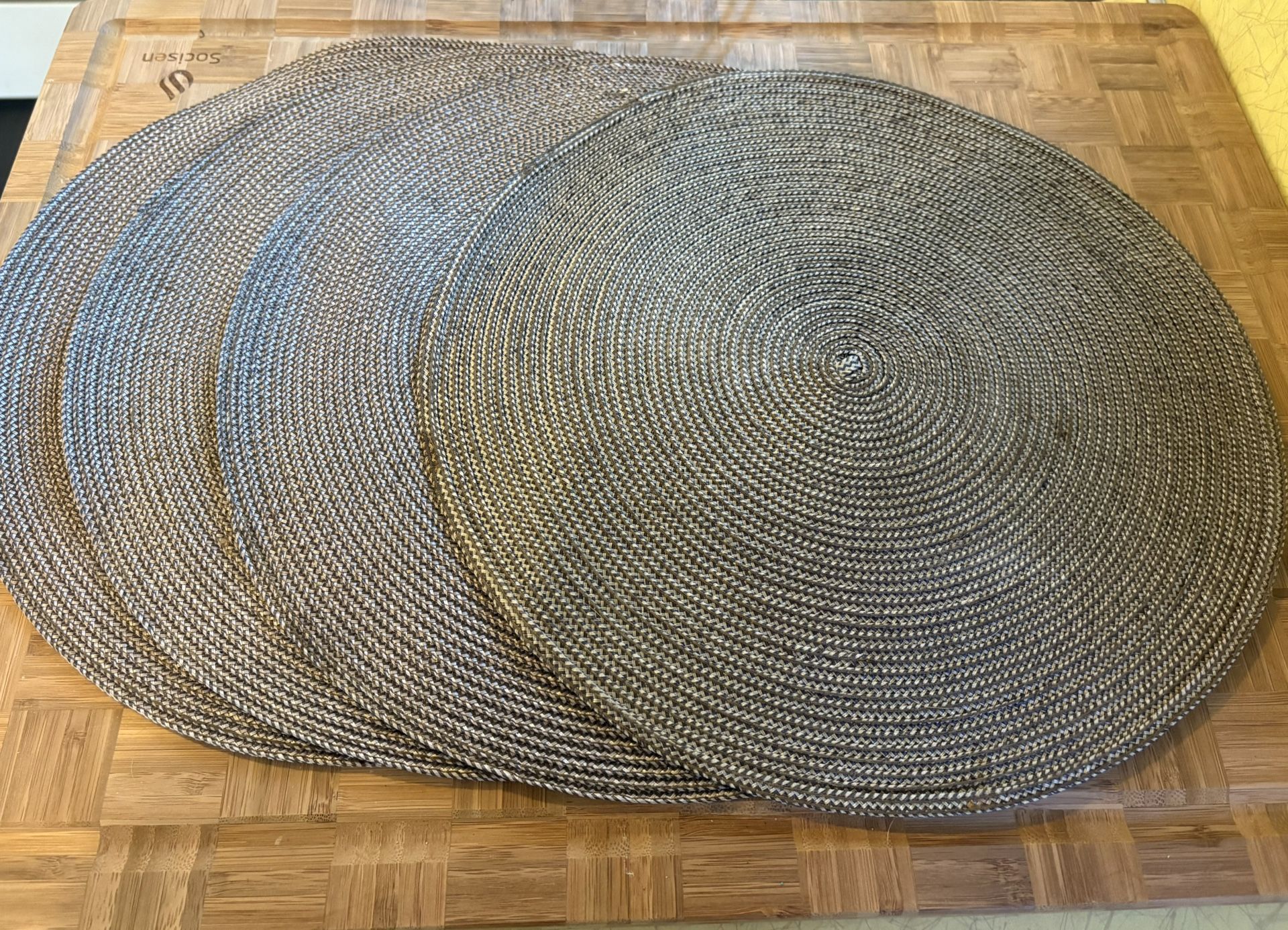 FREE 15” round braided place mats - set of 4 Great condition. Heat resistant. Only used a couple of times. Selling because they no longer match my kitchen colors after painting.