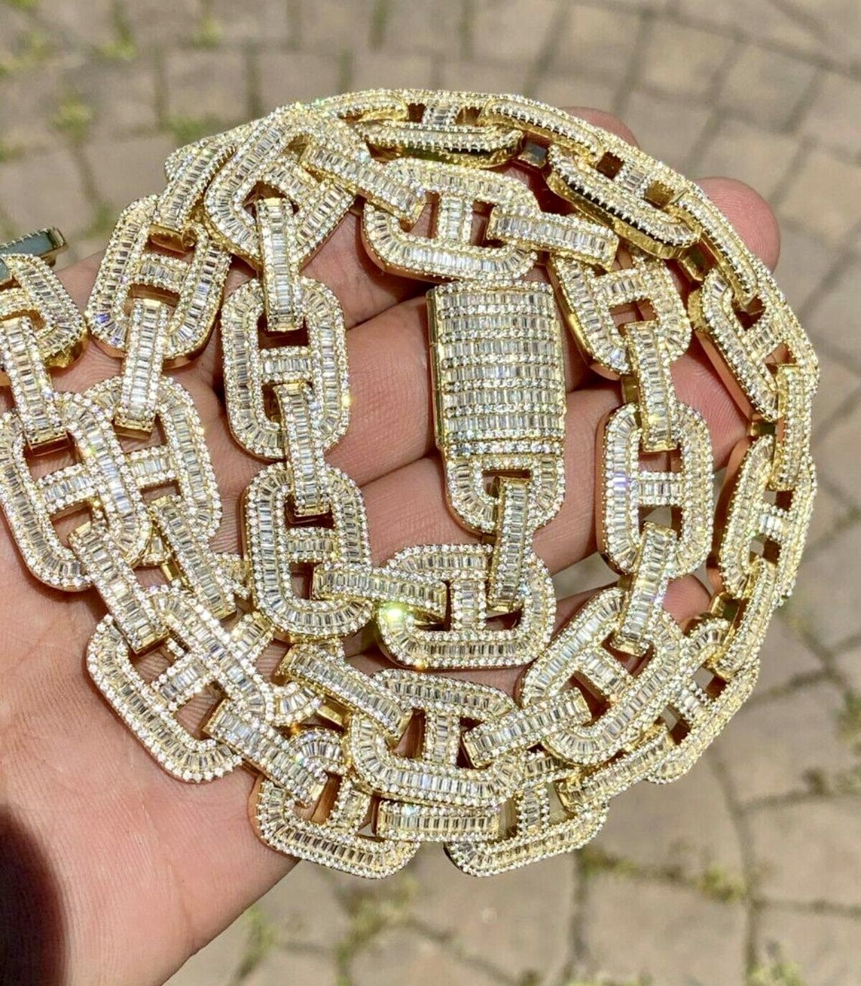 Men’s Miami Cuban link chain necklace 14k White Gold 5X Layered. Stones:1000 CZ Stones Length:18" Material: Brass Width:15 mm Color: White Gold Finish New! Quality that will last you years. Our motto is to provide our customers with the best description of our product and gives the best customer service. These Chain Pendant can be worn every day on all occasions. The 14k Gold 5x Layered on these Chain Pendant to give it a maximum gold life and doesn't change color. I made these Chain Pendant 100% NICKEL Free so my customers won't have any effect on their delicate skin.