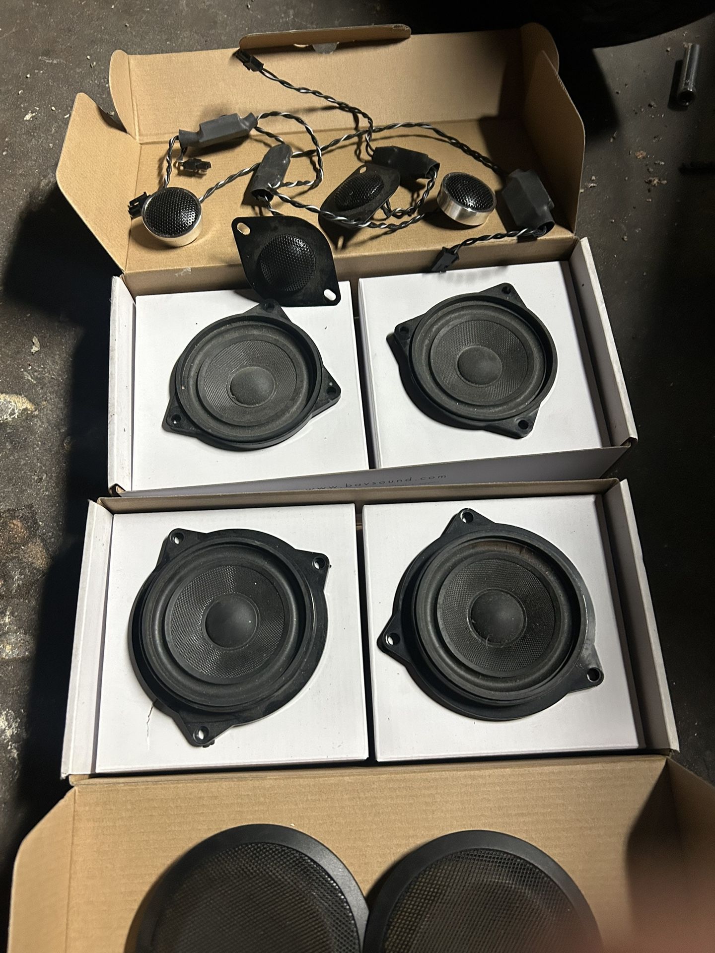 Taken out from my e90 bmw sedan, has door speakers and tweeters, comes in original box, used for only a few months, car got sold to junk yard so I’ve had these sitting in my garage since