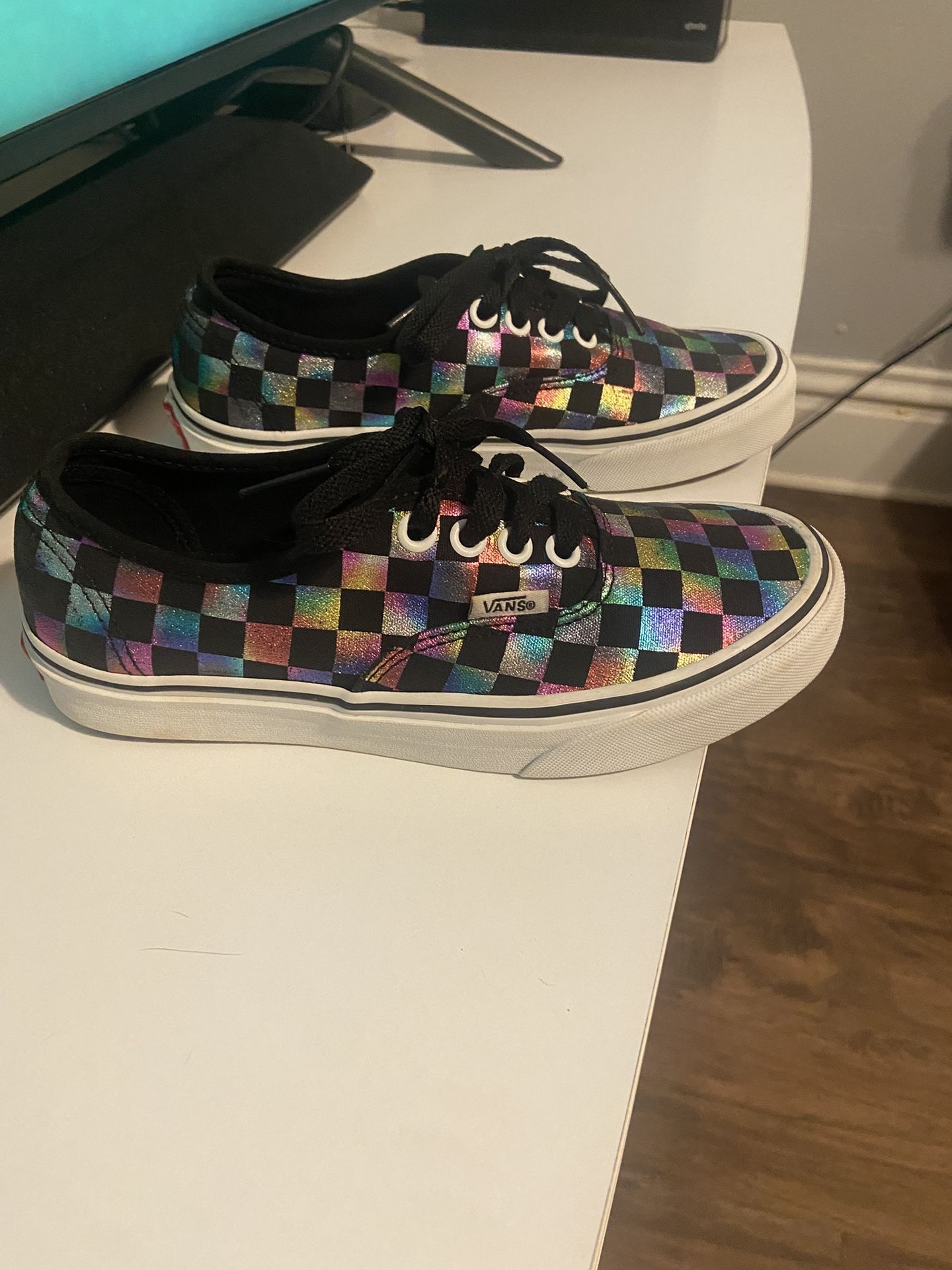 VANS Slip On Iridescent Rainbow Checkerboard Shoes men’s (4) women’s (5.5)