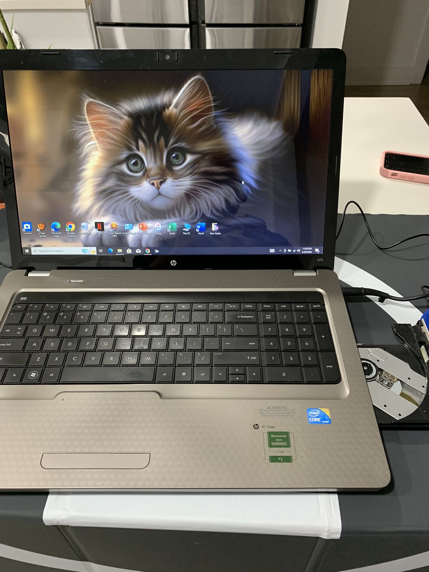 i3…i3…i3…HP. NÓTEBOOK model # G72. NÓTEBOOK WINDOWS 10 PROFESSIONAL 320.0 GB. HHD 8.0 memory ( ram ) Microsoft 2021 Version WORD, EXCEL, POWER POINT Intel ( R ) core (TM ) i3 M-350 @ 2..27 GHz……2266MHz 2 core(s) 4 logical processor Build on 04/20/2012 Original charger CD ROOM ( WEBCAM ) WIFI FAST, CLEAN, brand new battery Everything is working 100% Microsoft are install and activated WINDOWS are activated Screen size. 16.5