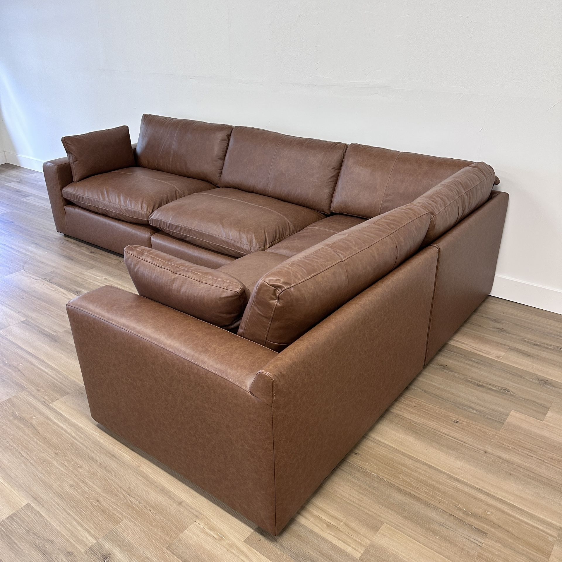 Brand new Beautiful Genuine Leather Emilia Sectional from Ashley Furniture This cloud couch is modular and consists of 4 pieces. You can add more pieces too! Emilia - Caramel - 4-Piece Sectional (as pictured in the listing): 130.0"W x 90.0"D x 36.0"H This model can be customized to any configuration you prefer! Let us know what you have in mind, and we'll be happy to help!
