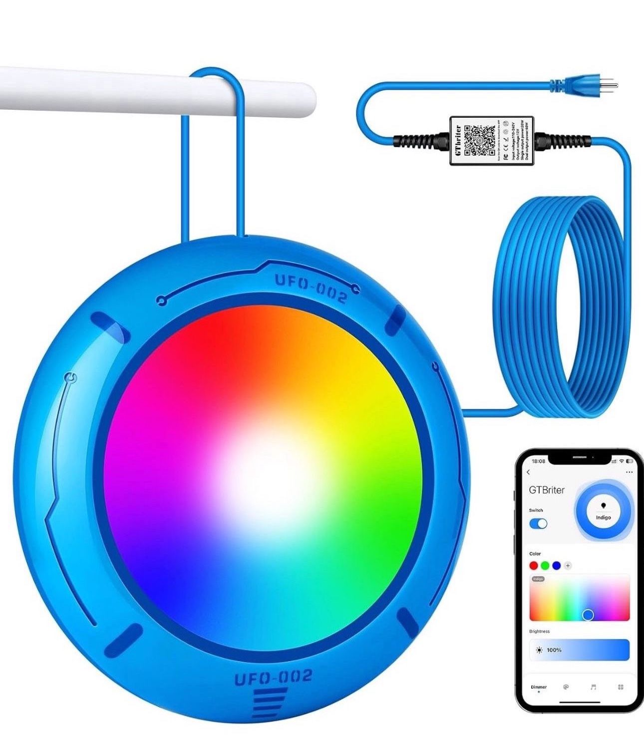 Above Ground Pool Lights with APP Control 20W RGB Dimmable LED Pool Lights with Suction Cups and Built-in Magnets 12V Underwater Pool Light for Above
