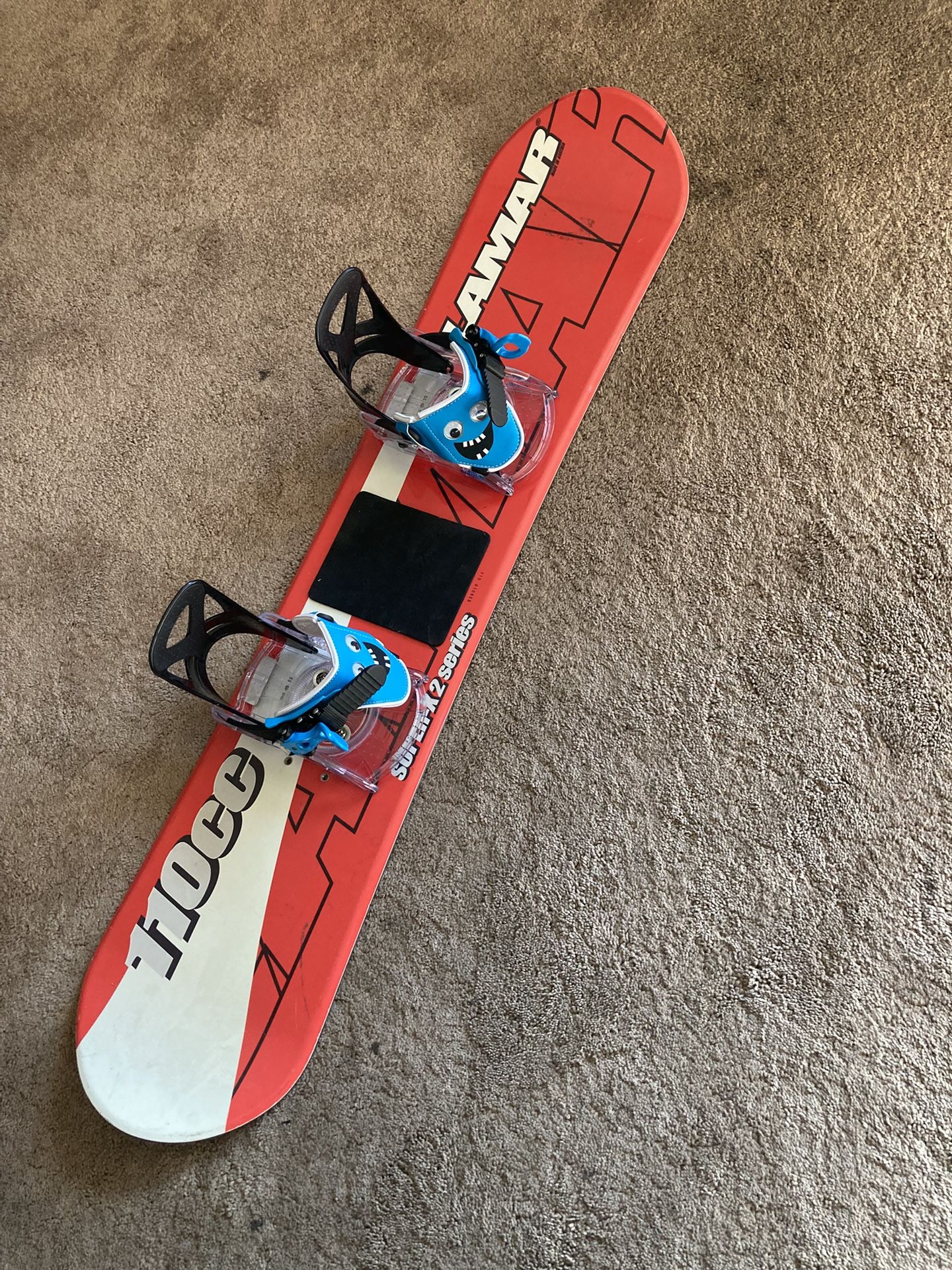 Little kids snowboard with new bindings. Add $50 with boots if needed