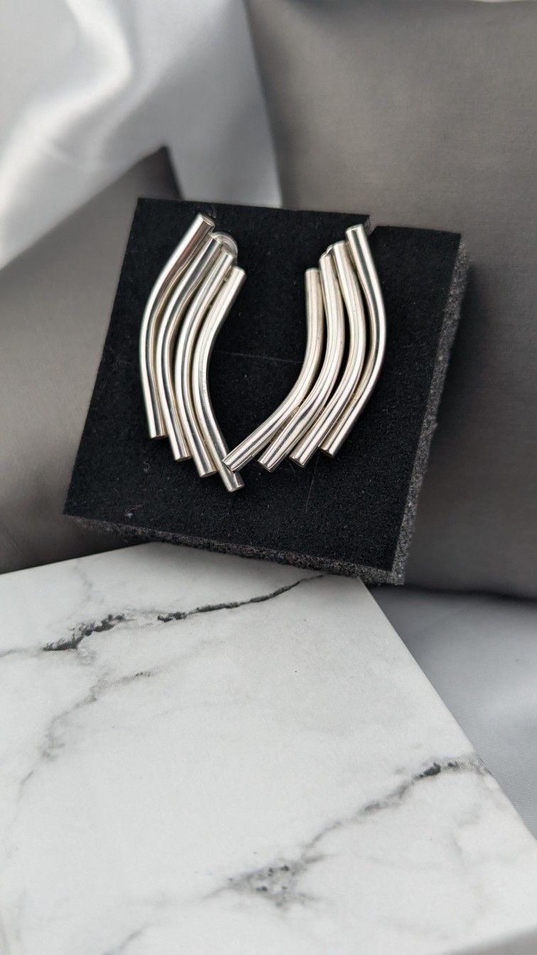 β¨ Minimalist Sterling Silver Earrings β¨ Sleek, modern,925 Sterling Silver bar earrings are the perfect everyday staple. Their curved multi-bar design creates a beautiful flow that adds movement and shine with every turn. Lightweight, polished, and versatile for any occasion.π π Details: β’ Genuine Sterling Silver β’ Approx. 1.25" length β’ Modern multi-bar wave design β’ Lightweight & comfortable for daily wear β’ Perfect for stacking, minimal style outfits, or a polished chic look A simple statement piece that elevates any outfit. Perfect gift for silver jewelry lovers π€ π¦ Local pickup available in Elmwood Park IL. π Gift box included ready to gift! π© Message us to claim FOLLOW -SHARE FOR MORE OFFERS β