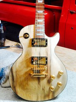 This is a one of a kind hand built custom guitar. It was ordered by a customer of mine and unfortunately he passed away before it was completed. I have well over $1,300 in wood and electronics alone. This was built with the best woods available and built to match as close as possible to the legendary ’59 Les Paul. There are ZERO veneers on this guitar and is high quality. Specs: Body materials: Back - Honduran mahogany (1 piece) Top - Myrtlewood (1 piece - rare) Neck - Hard Maple (1 piece - not laminated) Fretboard - Rosewood Frets- Jescar - Gold Inlay - MOP Neck differences to LP: 7 degrees. Volute on back near headstock to strengthen neck/headstock area Electronics: Seymour Duncan - Whole Lotta Bucker - Neck/Bridge Wiring: 21 Tone JP harness with CTS Push/Push pots and switchcraft. Shielded wiring. Hard Case - Not included. Playability- guitar has very low action and plays very smoothly. I can adjust the action to your preference as part of the purchase. It has serious sustain on it and sounds pretty amazing. This is definitely one of my top builds. I stand behind all instruments I build with a full warranty for the life of the guitar. If you are not satisfied with this instrument within 30 days. I will refund your money in FULL. NOTE: Guitar must be returned in exactly the same condition it was sold in. I fully document all my instruments from all angles.