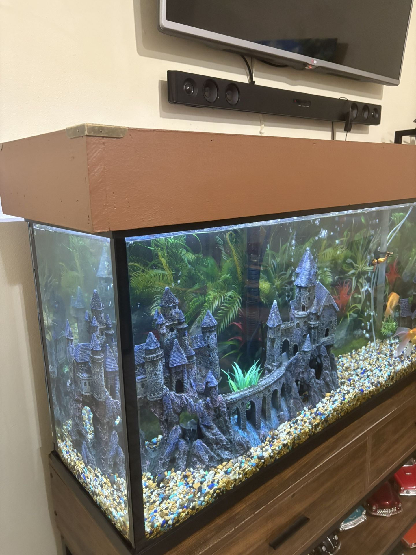 Pescera 55 gallon con filtro grande y tapa de Madera con luces 55 gallons with filter and top with light perfect condition and background cover