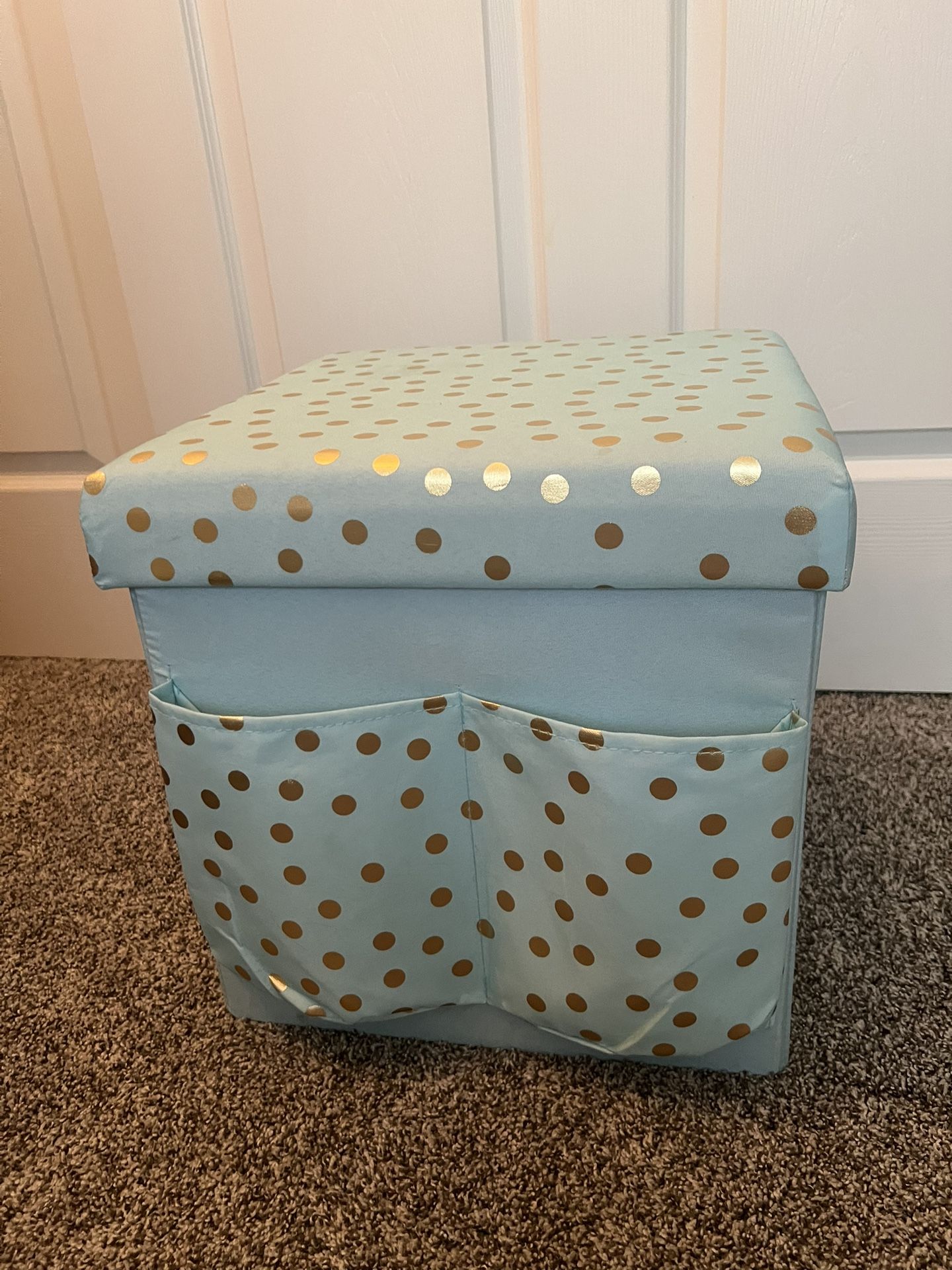 Like New! Collapsible Storage Cube with Polka Dots & front pockets * This is very sturdy and can be sat on. Not sure of the weight limit but perfect for a kid $ Cash Only $ > No Holds ~ Pjck up: West Chicago, 60185 near intersection Rt64 & Rt59