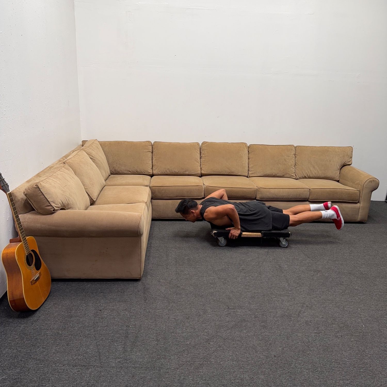 12K OFF. Timeless design. This is one of the most comfortable sofas that we have, the back support is amazing. Each piece has interlocking hardware, very heavy and high quality. The color is Corona Bark (light brown / beige) The 2 configurations in the photos that we did is 10.5 x 10.5 FT / 12.5 x 8.5 FT