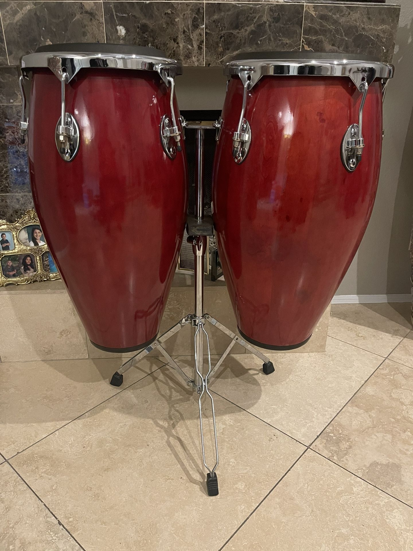 Professional Big Wide 12” 13” Solid Mango Wood Congas and Heavy Duty Stand.