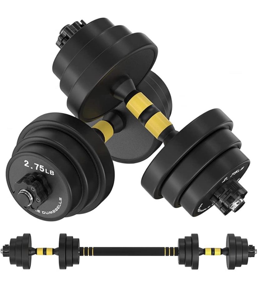IAMACE Adjustable Dumbbells Set 44 lb with Durable Steel Dumbbell Rod,2 in 1 Barbell Free Weights Dumbbells Set for Home Gym Fitness Workout Exercise Training