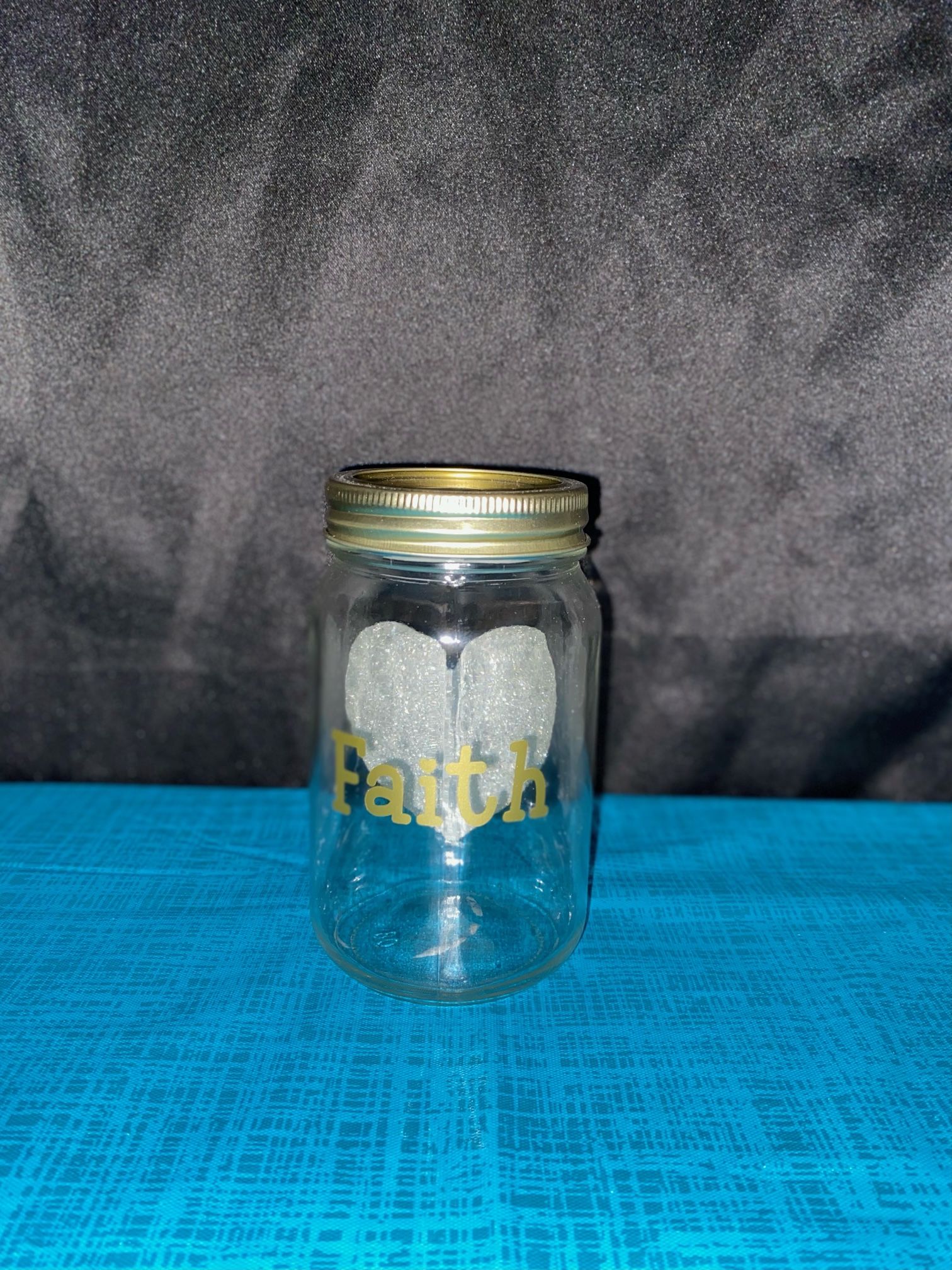 Mason Jar Says Faith On One Side And Had A Heart On The Other Side