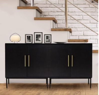 2 Storage cabinets - all black with gold handles. 1 has doors and the other is open, but I have the doors and handles. All instruction materials and handles are included. Dimensions in pictures. Buyer must pick up.